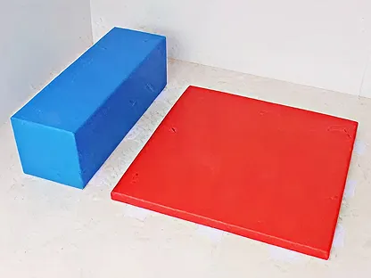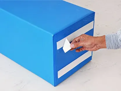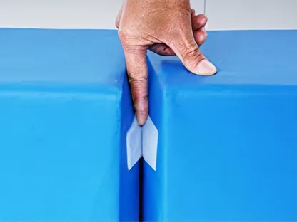 ジョイントシールの裏紙を剥がし、フロアマット底面のマジックテープに半分を張り付けます。90cmあたり3枚程度が目安です。