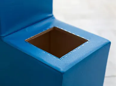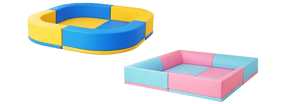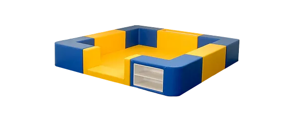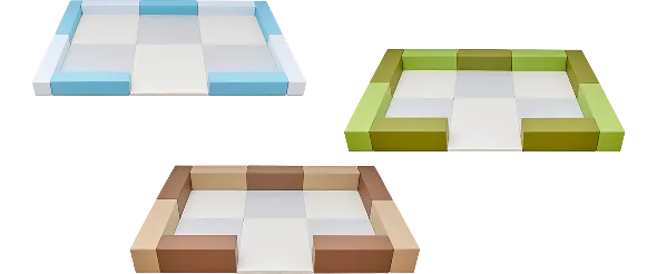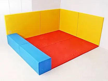 サイドガードの木枠にオス/メスのジョイント加工を施し、組み合わせる事でがっちりと固定するタイプのキッズコーナーです。