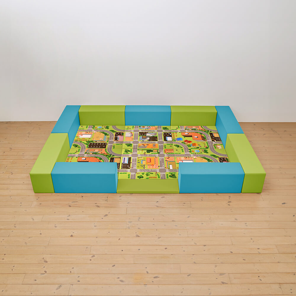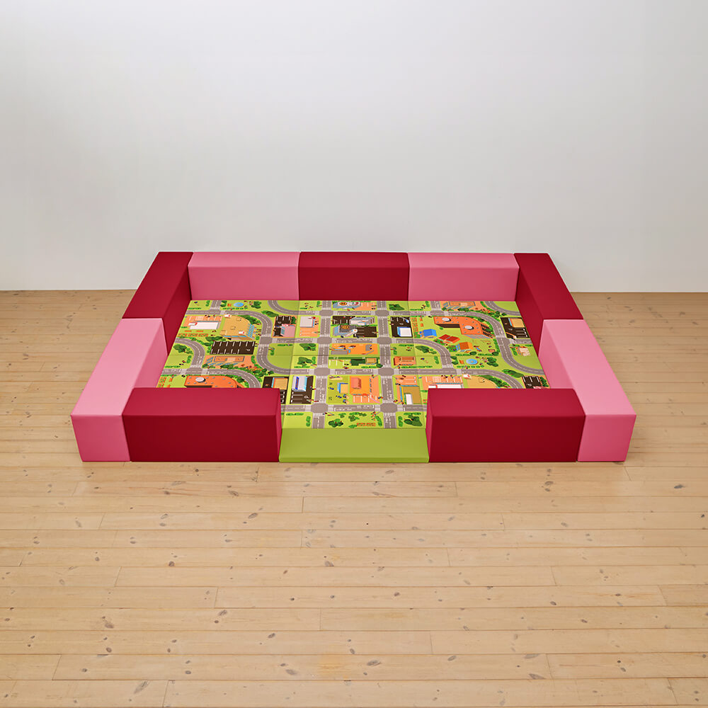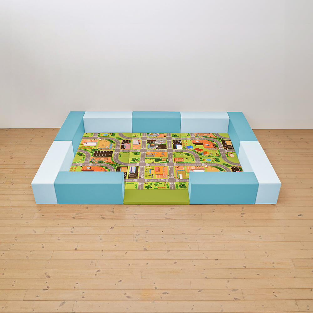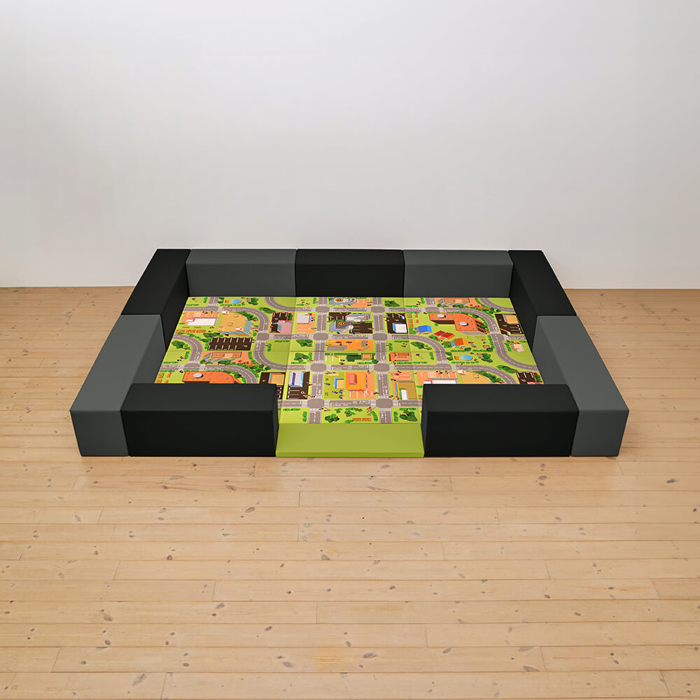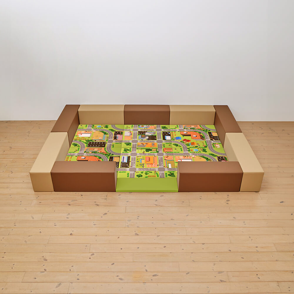 サイドガードの高さが350mm(ライオン)の交通マットシリーズのキッズコーナー3畳セットの入り口付きになります。同タイプでノーマル、入り口・下駄箱付きのタイプもございます。