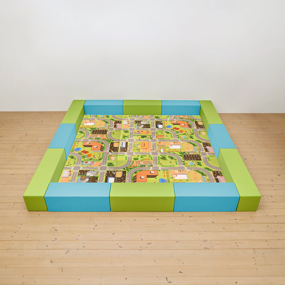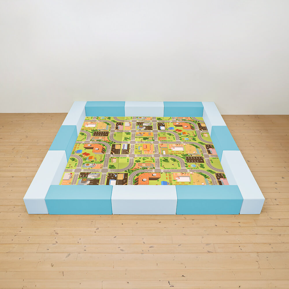 サイドガードの高さが300mm(バンビ)の交通マットシリーズのキッズコーナー4.5畳セットになります。同タイプで入り口付き、入り口・下駄箱付きのタイプもございます。