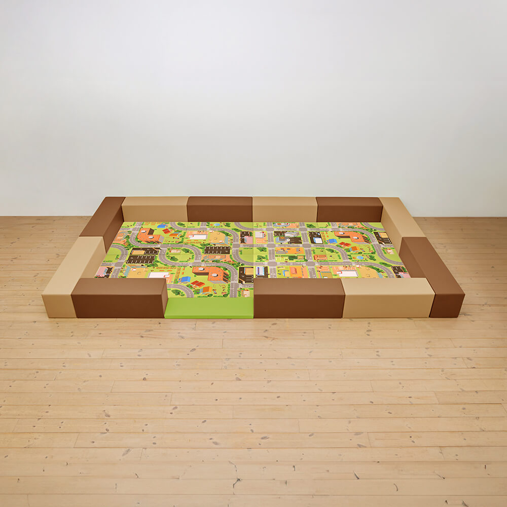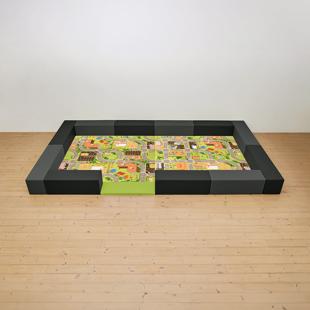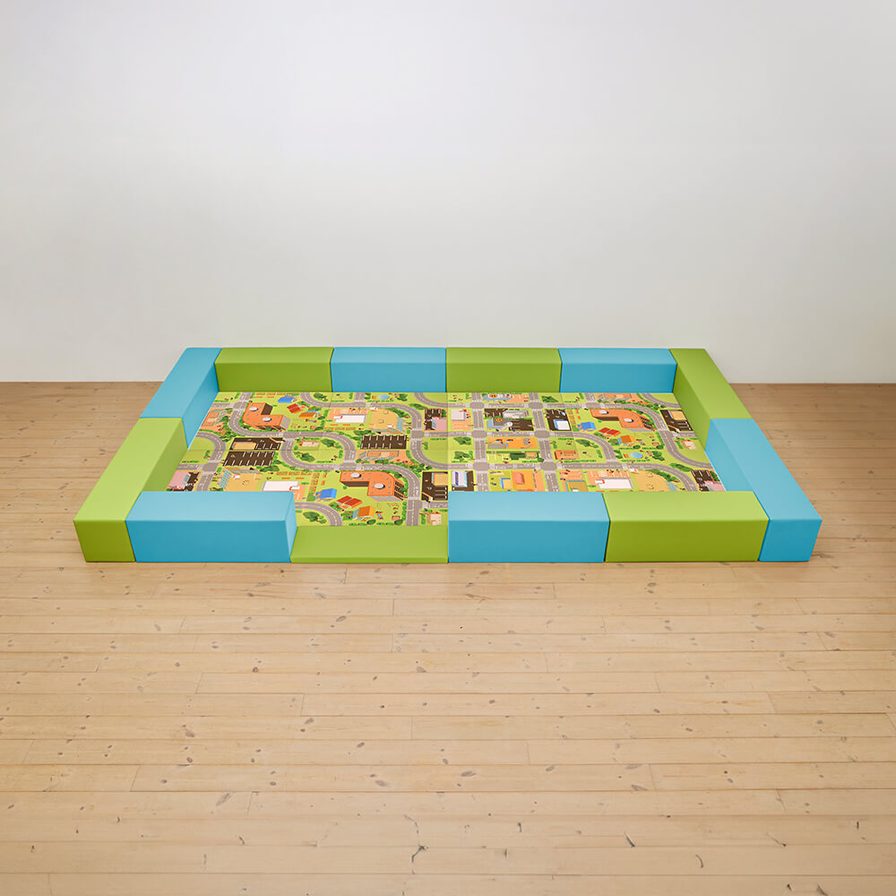 サイドガードの高さが300mm(バンビ)の交通マットシリーズのキッズコーナー4畳セットの入り口付きになります。同タイプでノーマル、入り口・下駄箱付きのタイプもございます。