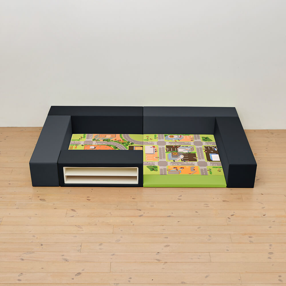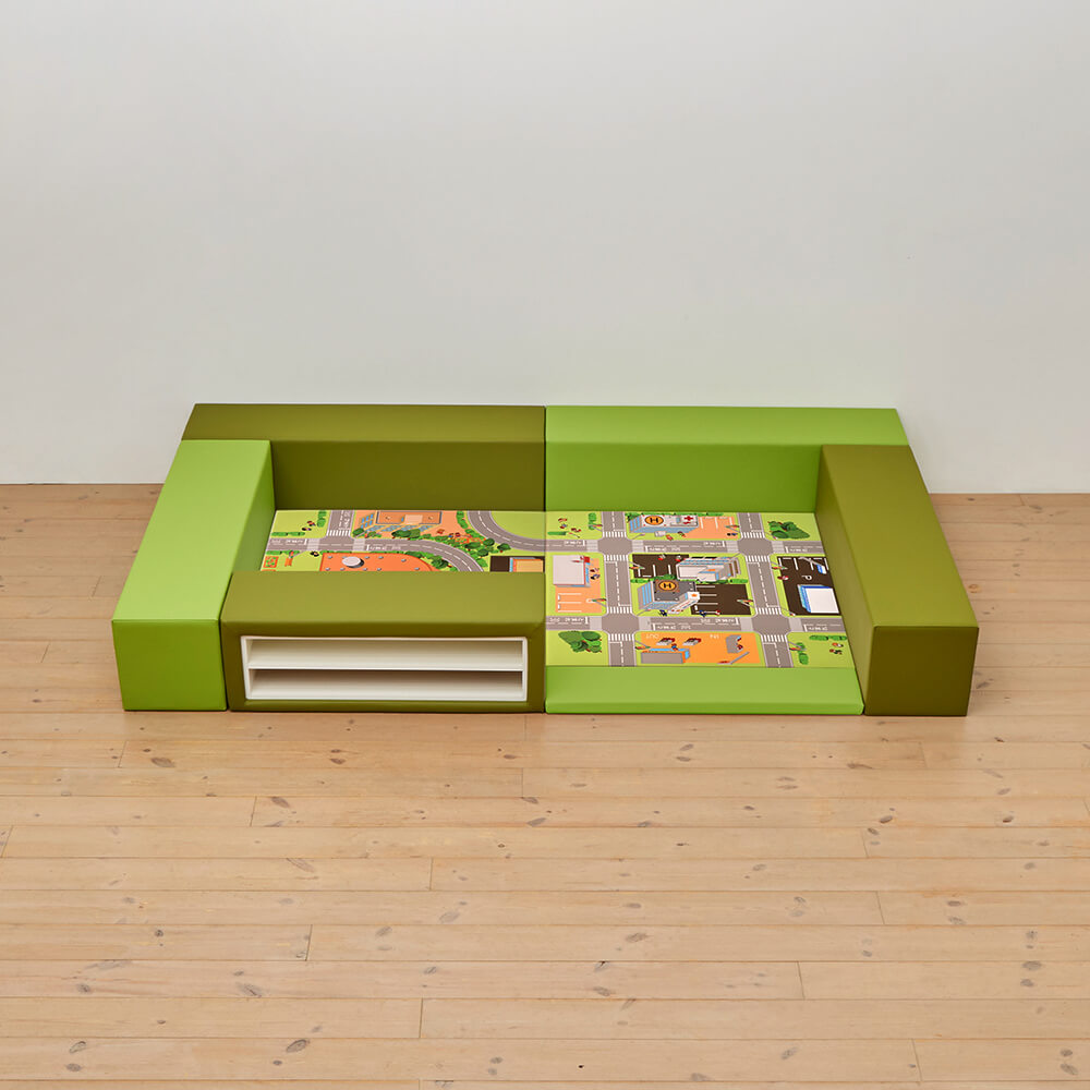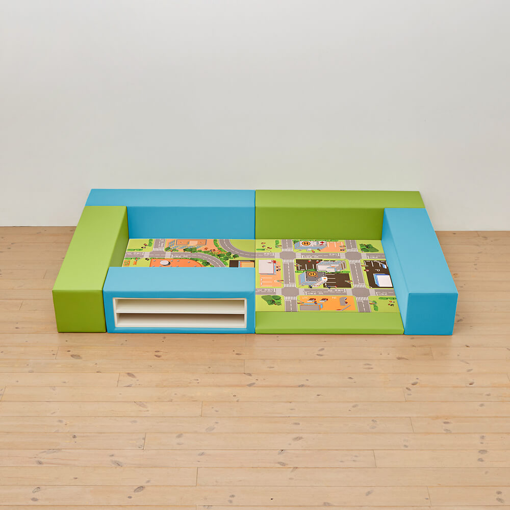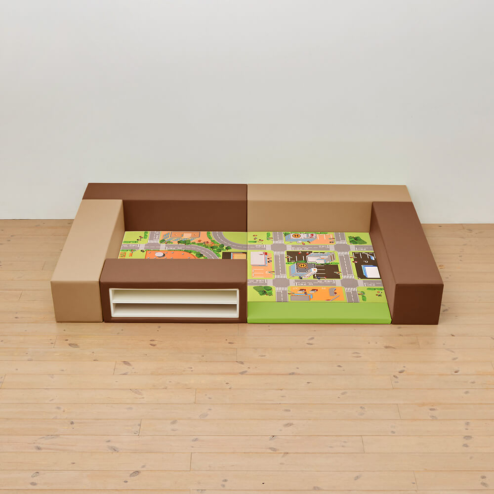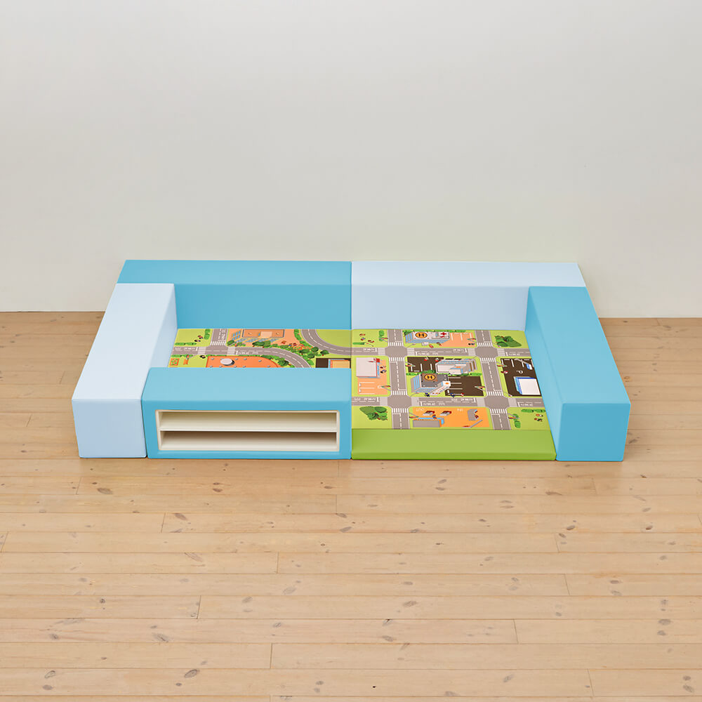 サイドガードの高さが300mm(バンビ)の交通マットシリーズのキッズコーナー1畳セットの入り口・下駄箱付きになります。同タイプでノーマル、入り口付きのタイプもございます。
