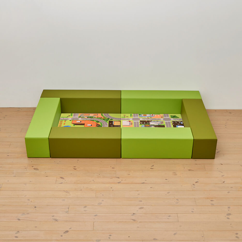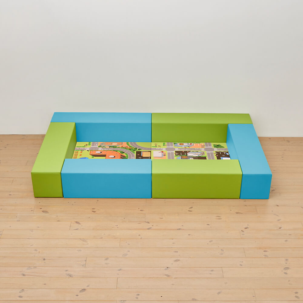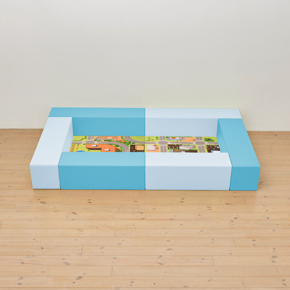 サイドガードの高さが300mm(バンビ)の交通マットシリーズのキッズコーナー1畳セットになります。同タイプで入り口付き、入り口・下駄箱付きのタイプもございます。