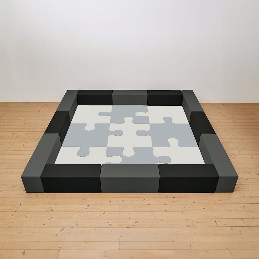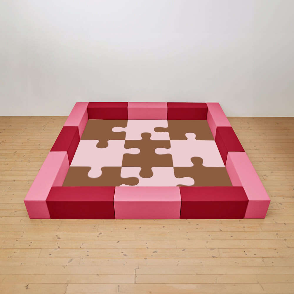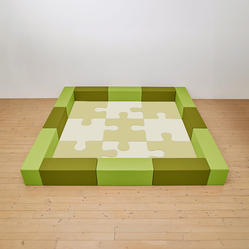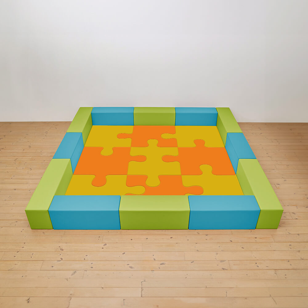 サイドガードの高さが350mm(ライオン)のジグソーシリーズのキッズコーナー4.5畳セットになります。同タイプで入り口付き、入り口・下駄箱付きのタイプもございます。