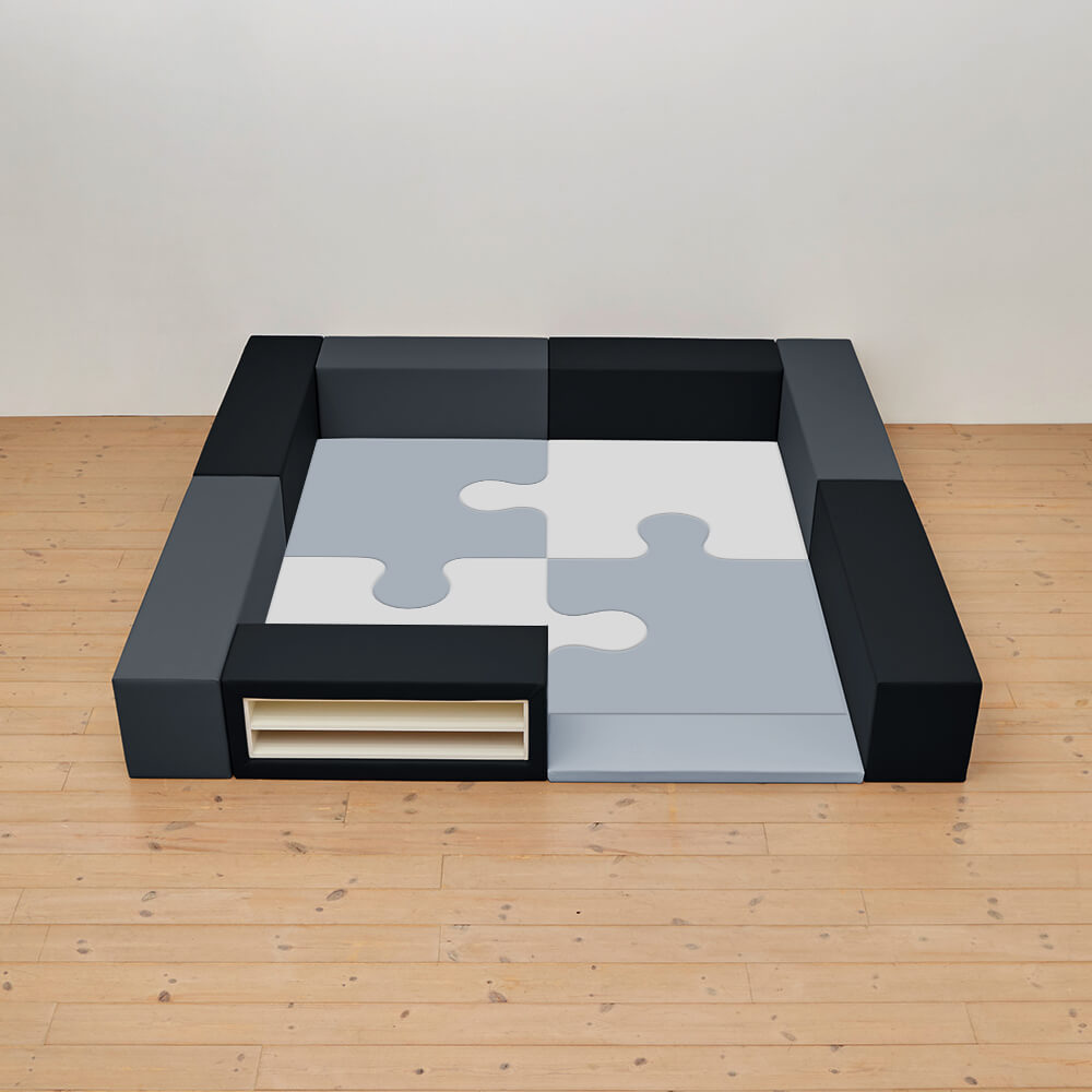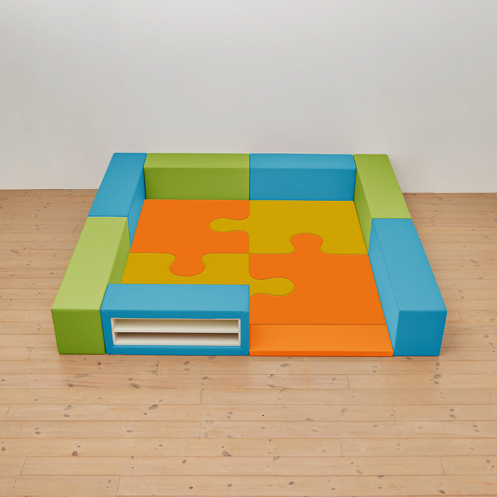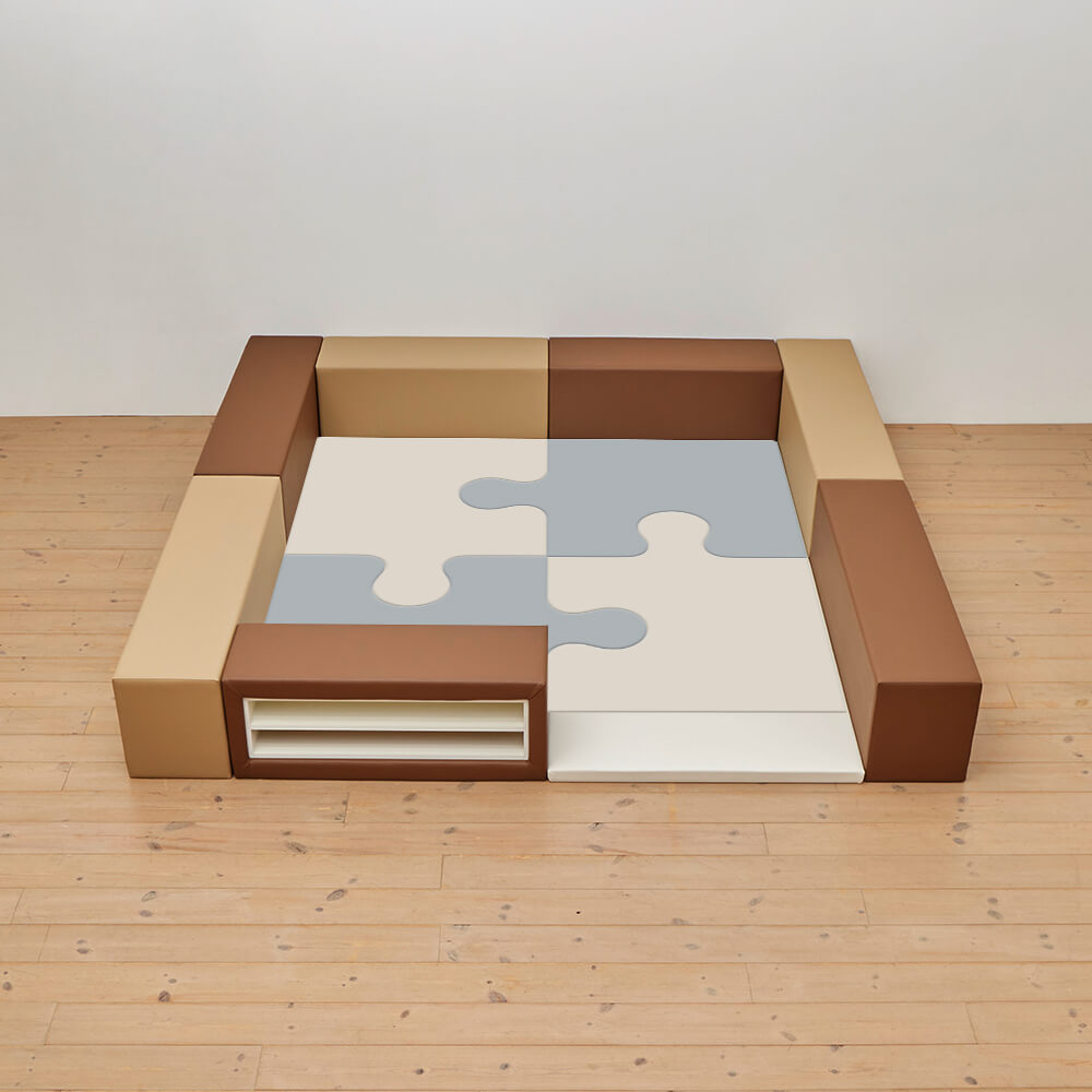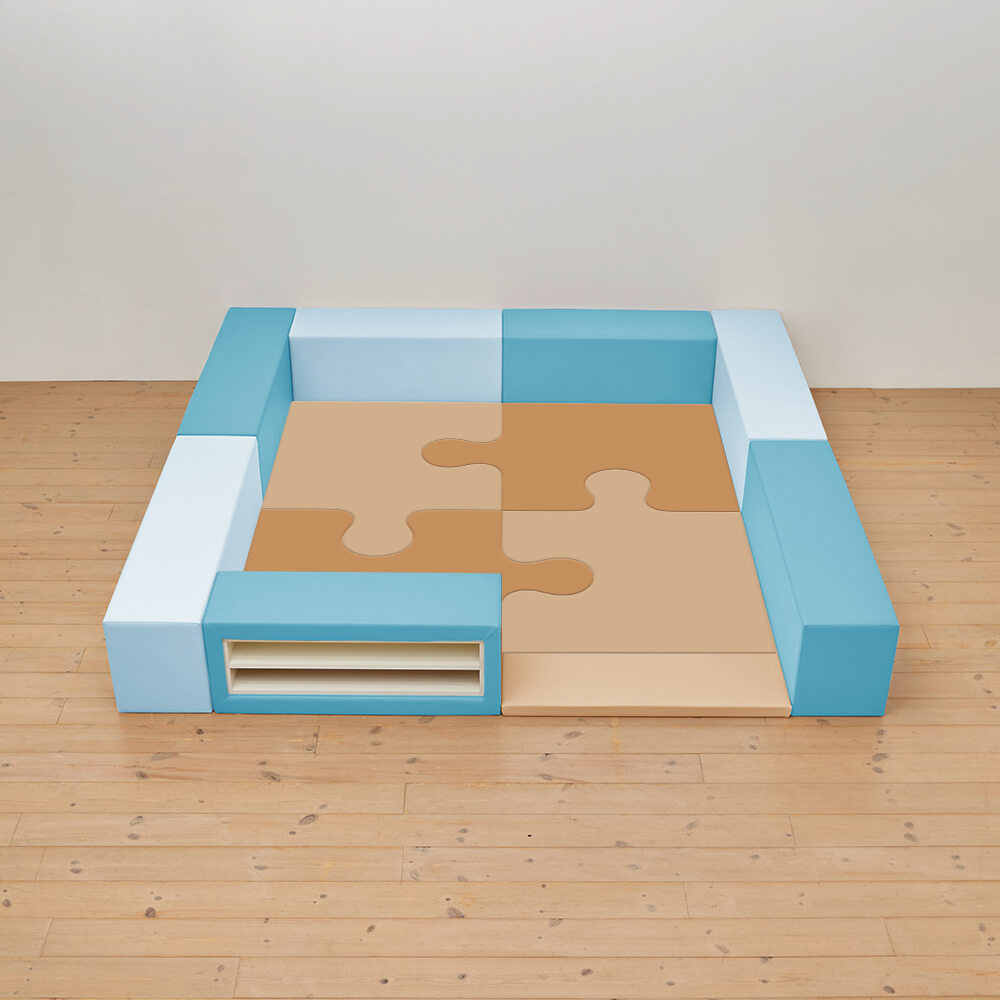 サイドガードの高さが350mm(ライオン)のジグソーシリーズのキッズコーナー2畳セットの入り口・下駄箱付きになります。同タイプでノーマル、入り口付きのタイプもございます。