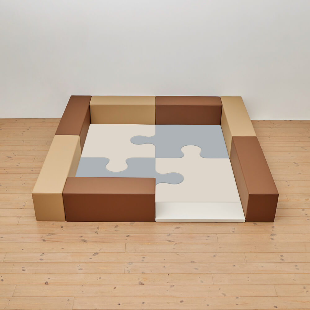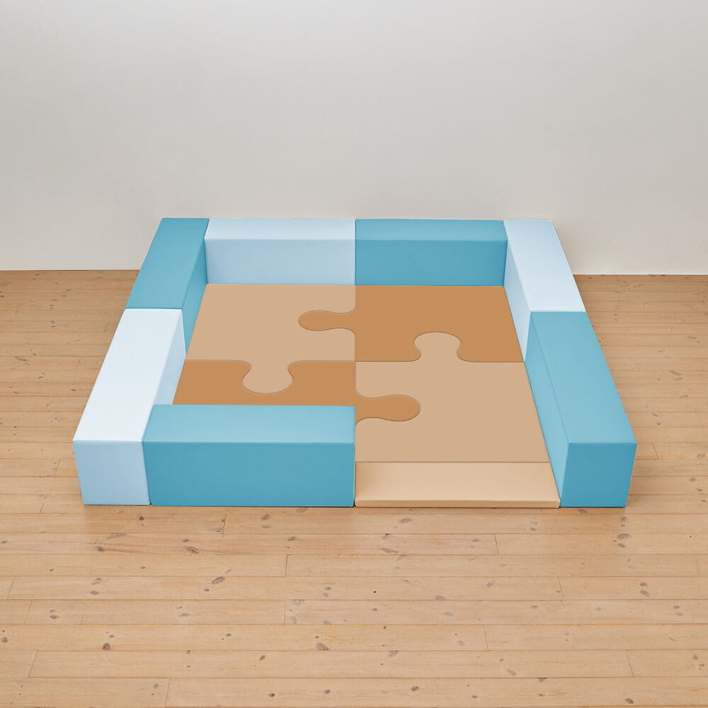 サイドガードの高さが350mm(ライオン)のジグソーシリーズのキッズコーナー2畳セットの入り口付きになります。同タイプでノーマル、入り口・下駄箱付きのタイプもございます。