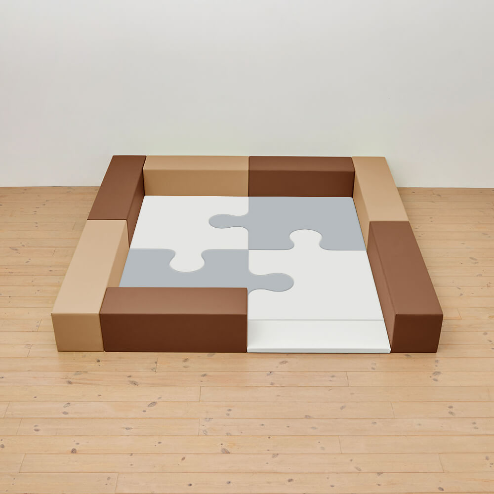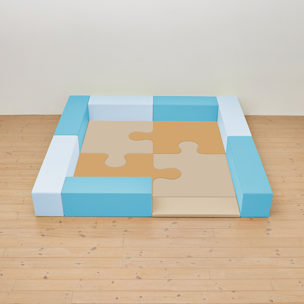 サイドガードの高さが300mm(バンビ)のジグソーシリーズのキッズコーナー2畳セットの入り口付きになります。同タイプでノーマル、入り口・下駄箱付きのタイプもございます。