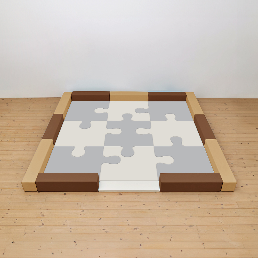 サイドガードの高さが200mm(リス)のジグソーシリーズのキッズコーナー4.5畳セットの入り口付きになります。同タイプでノーマル、入り口・下駄箱付きのタイプもございます。