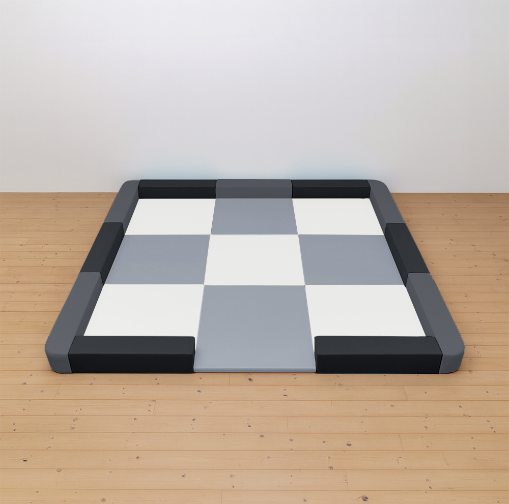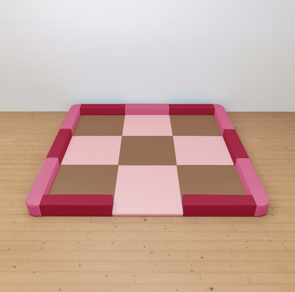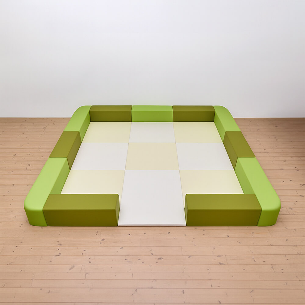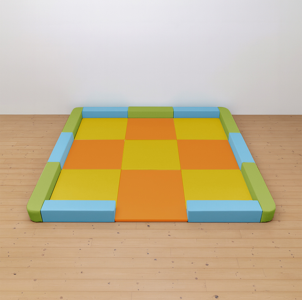サイドガードの高さが300mm(バンビ)のベーシックシリーズのキッズコーナー4.5畳角Rセットの入り口付きになります。同タイプでノーマル、入り口・下駄箱付きのタイプもございます。