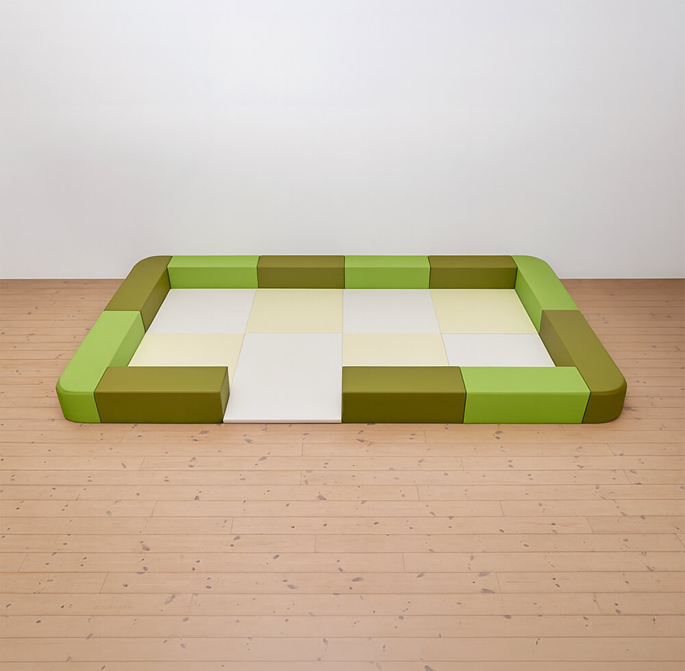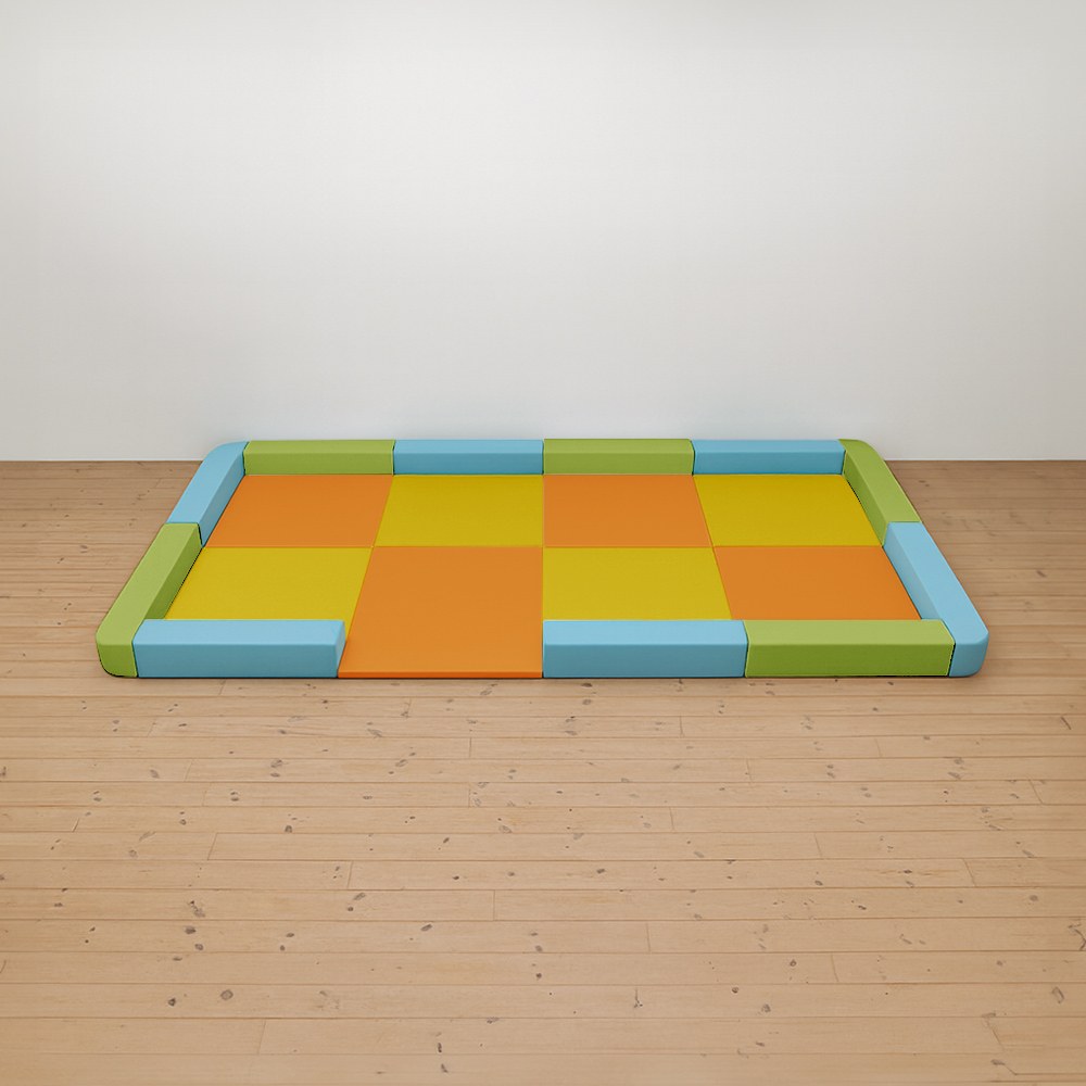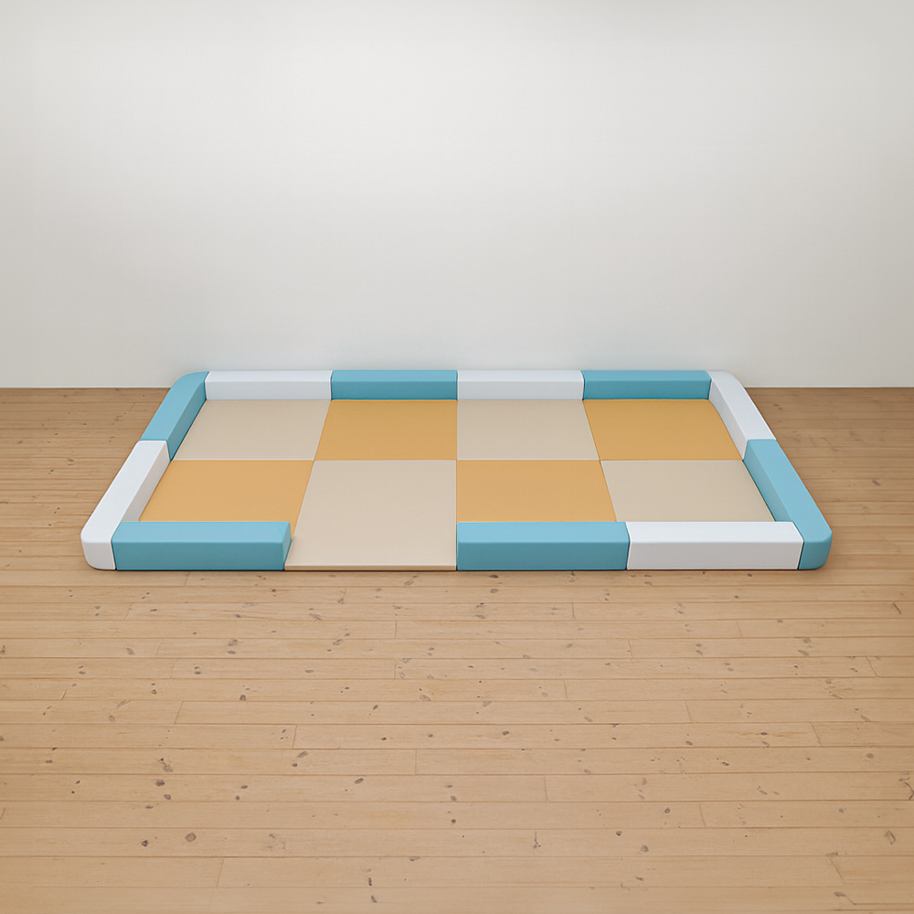 サイドガードの高さが300mm(バンビ)のベーシックシリーズのキッズコーナー4畳角Rセットの入り口付きになります。同タイプでノーマル、入り口・下駄箱付きのタイプもございます。