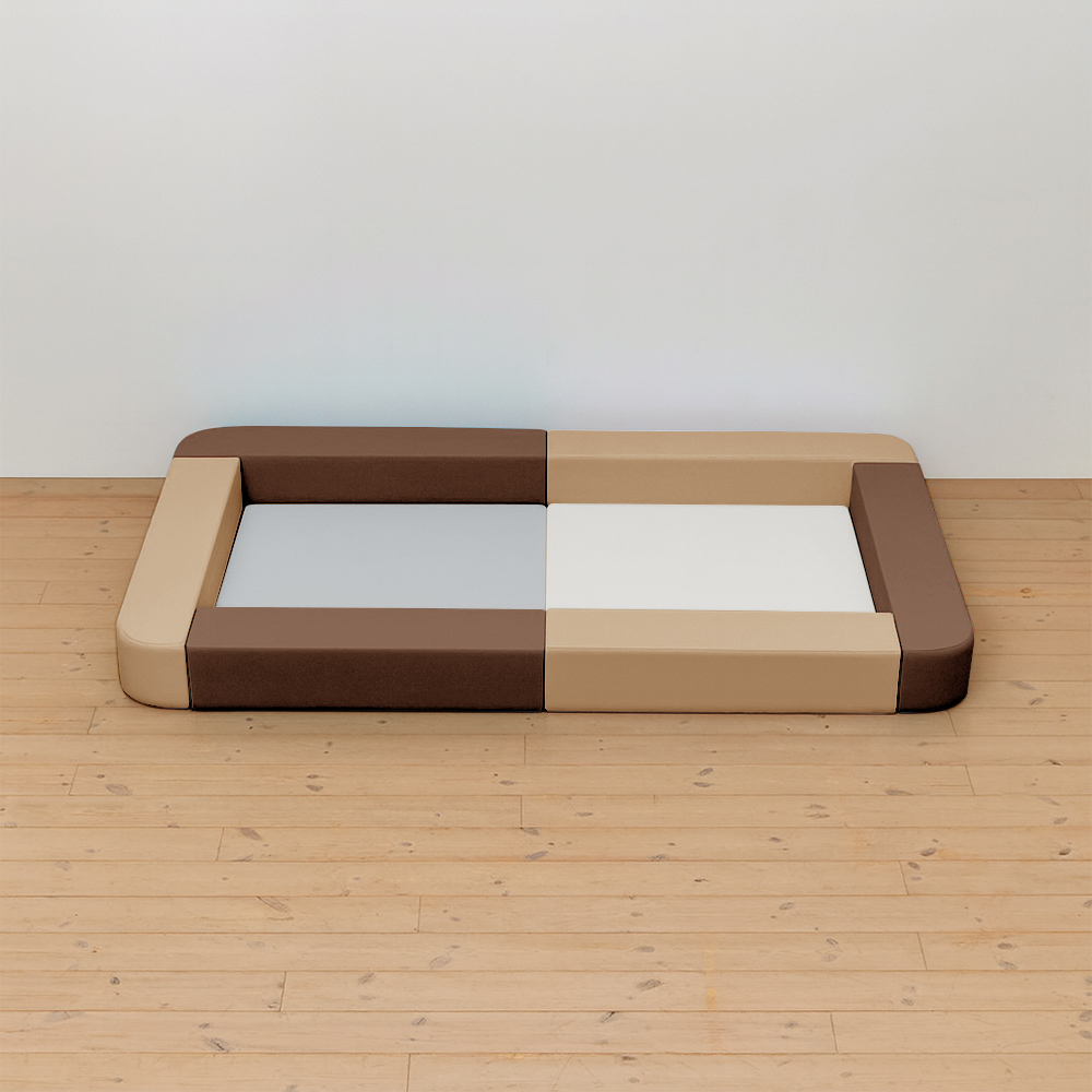 サイドガードの高さが300mm(バンビ)のベーシックシリーズのキッズコーナー1畳角Rセットになります。同タイプで入り口付き、入り口・下駄箱付きのタイプもございます。