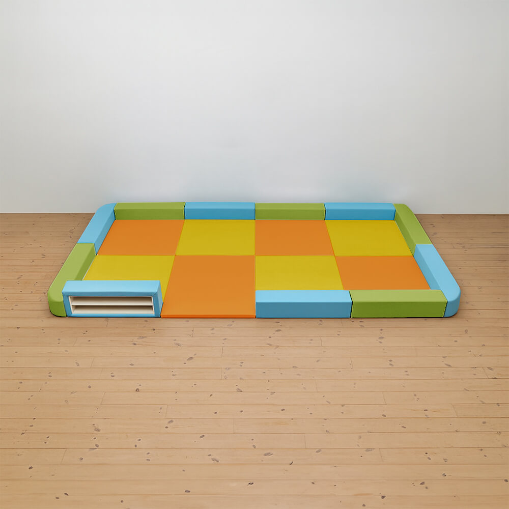 サイドガードの高さが200mm(リス)のベーシックシリーズのキッズコーナー4畳角Rセットの入り口・下駄箱付きになります。同タイプでノーマル、入り口付きのタイプもございます。