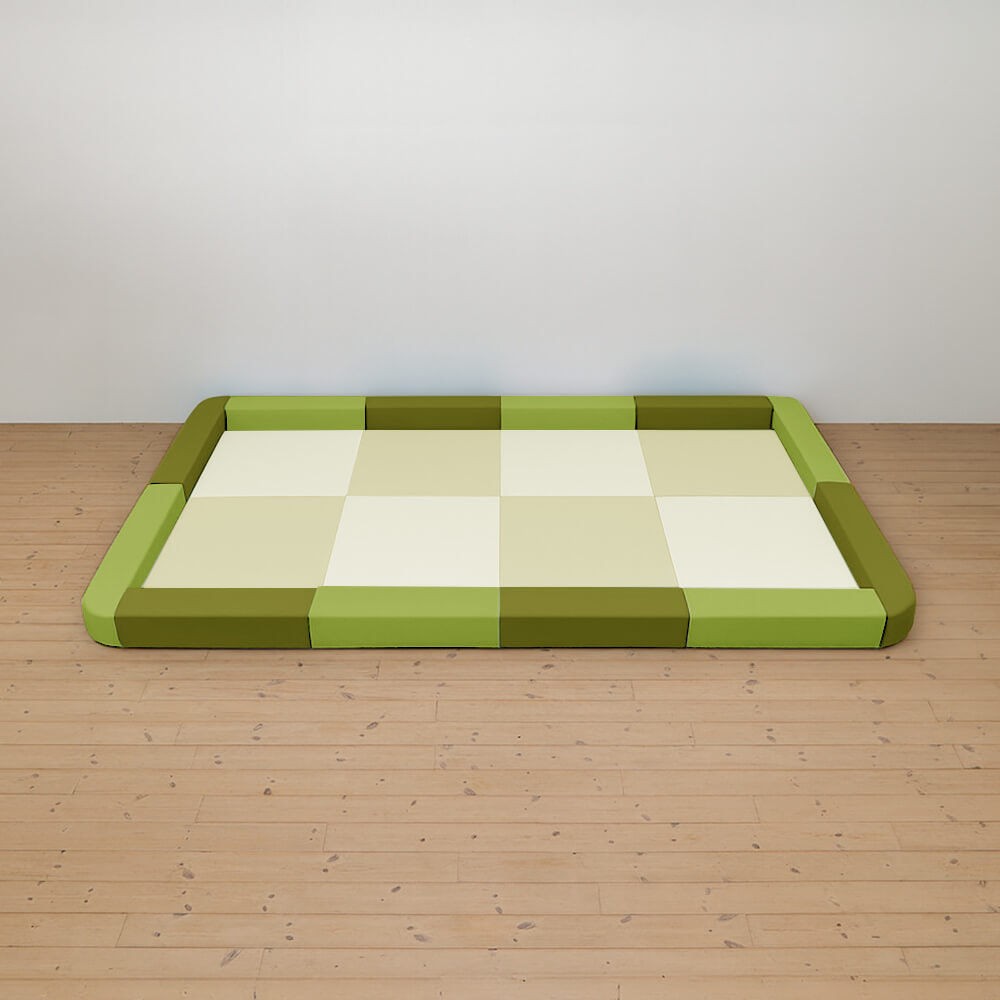サイドガードの高さが200mm(リス)のベーシックシリーズのキッズコーナー4畳角Rセットになります。同タイプで入り口付き、入り口・下駄箱付きのタイプもございます。