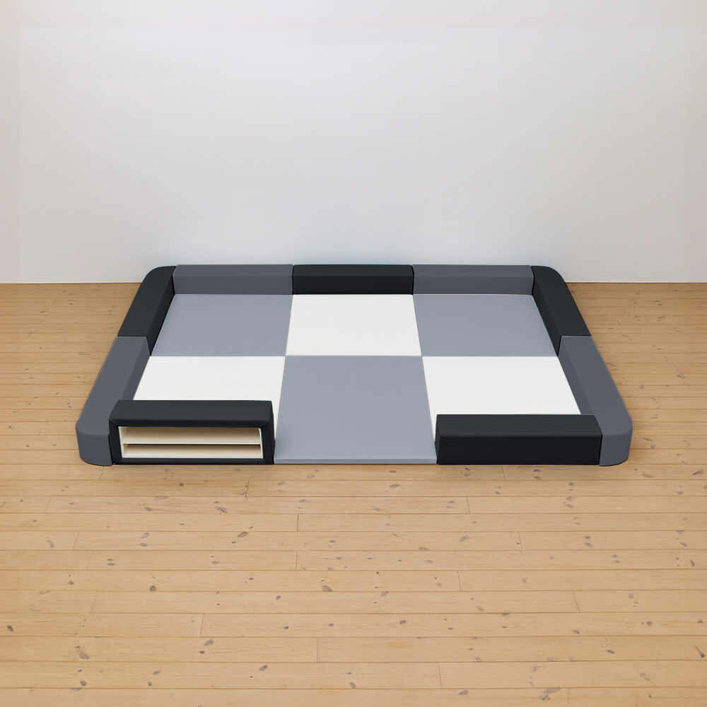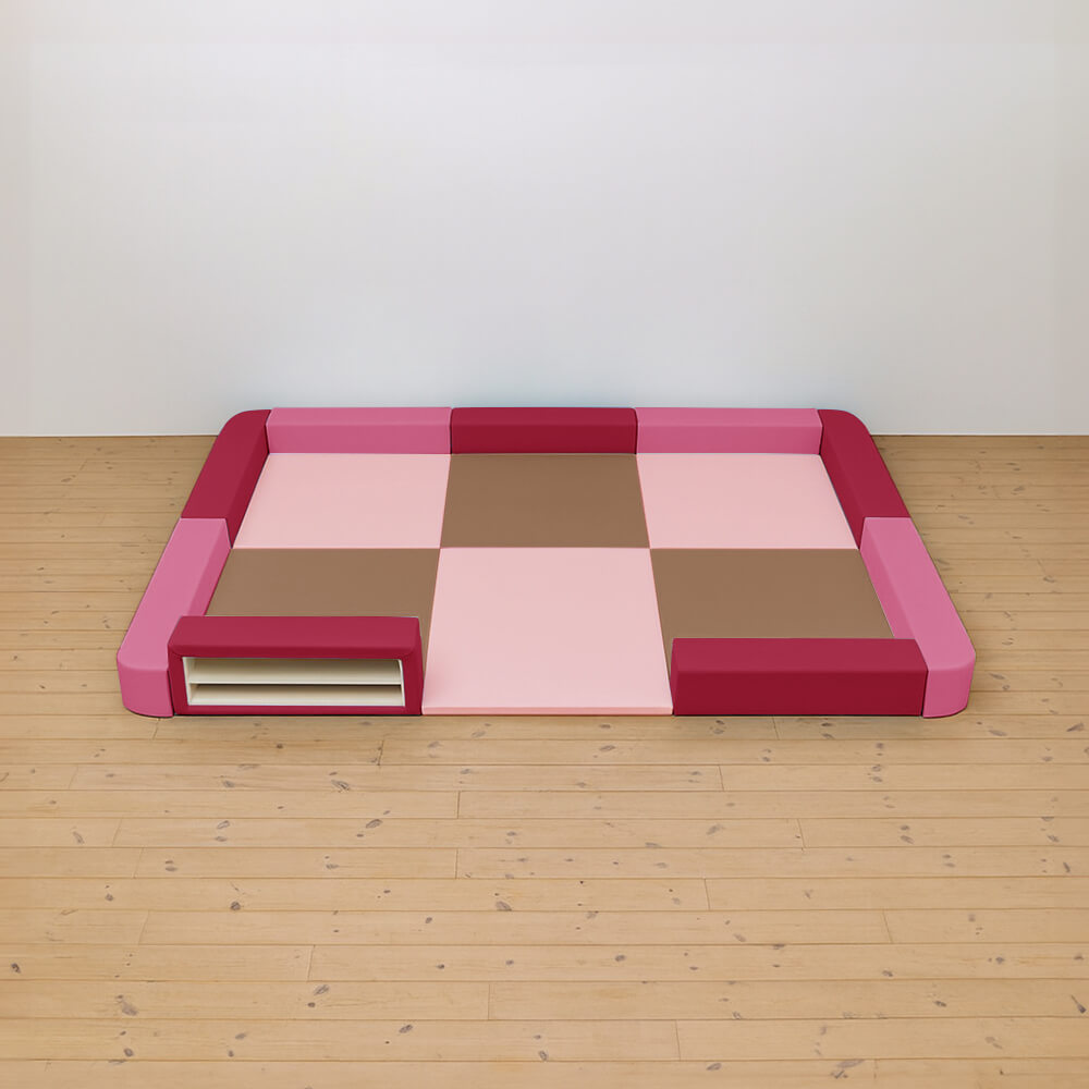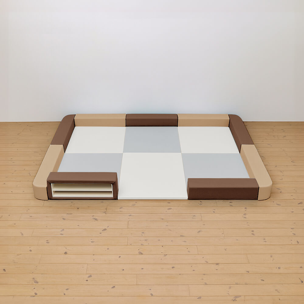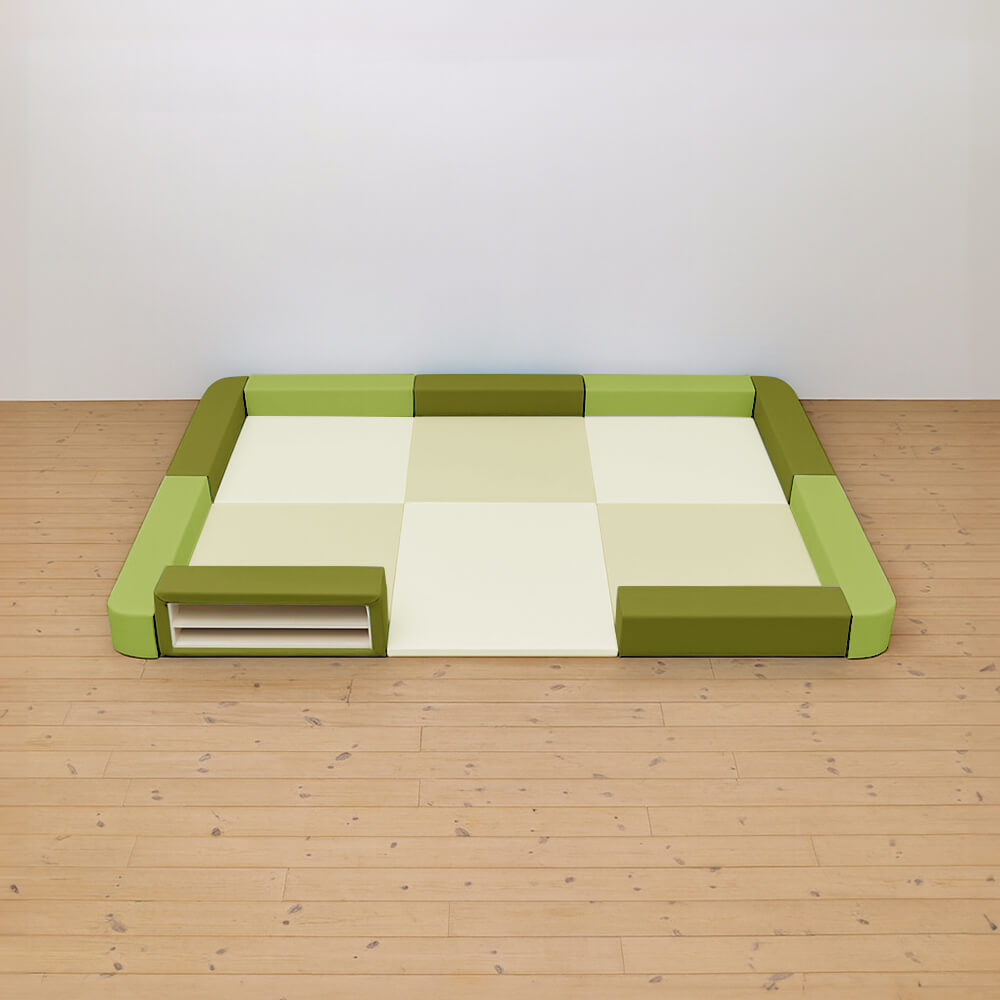 サイドガードの高さが200mm(リス)のベーシックシリーズのキッズコーナー3畳角Rセットの入り口・下駄箱付きになります。同タイプでノーマル、入り口付きのタイプもございます。
