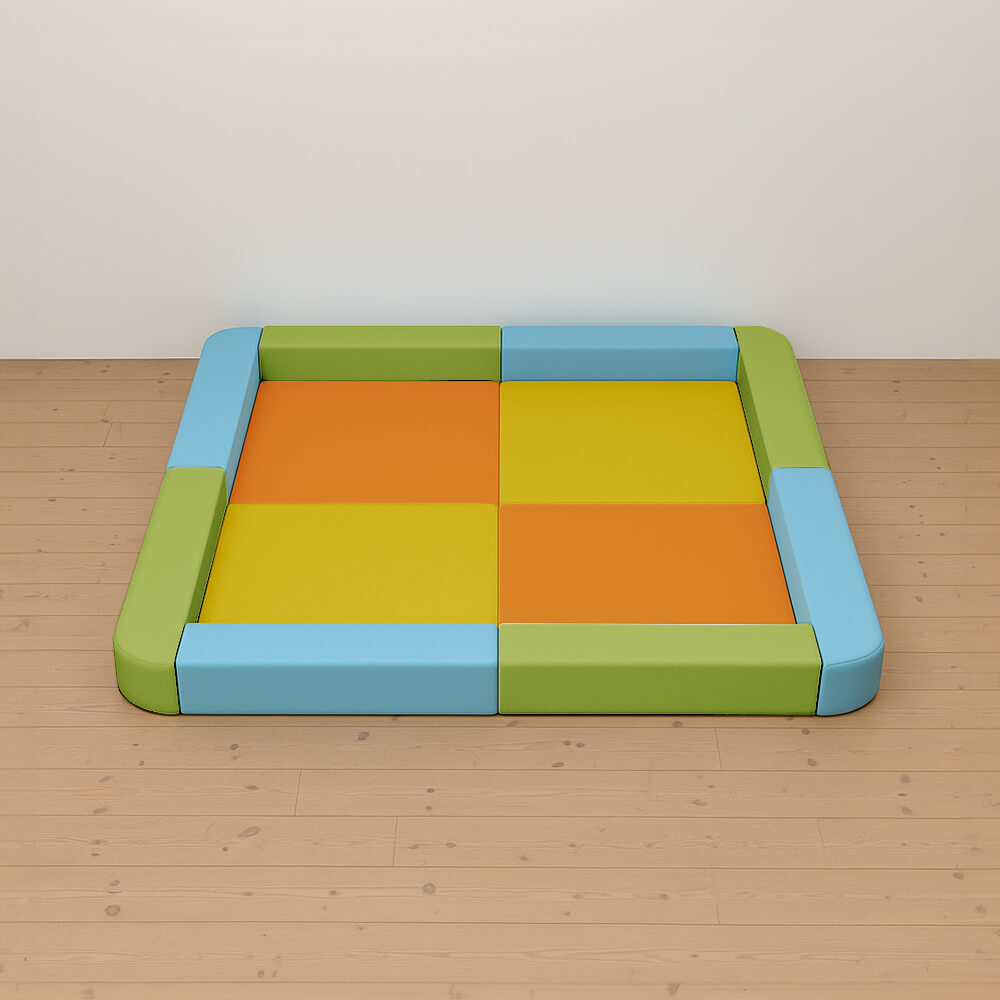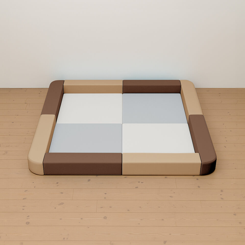 サイドガードの高さが200mm(リス)のベーシックシリーズのキッズコーナー2畳角Rセットになります。同タイプで入り口付き、入り口・下駄箱付きのタイプもございます。