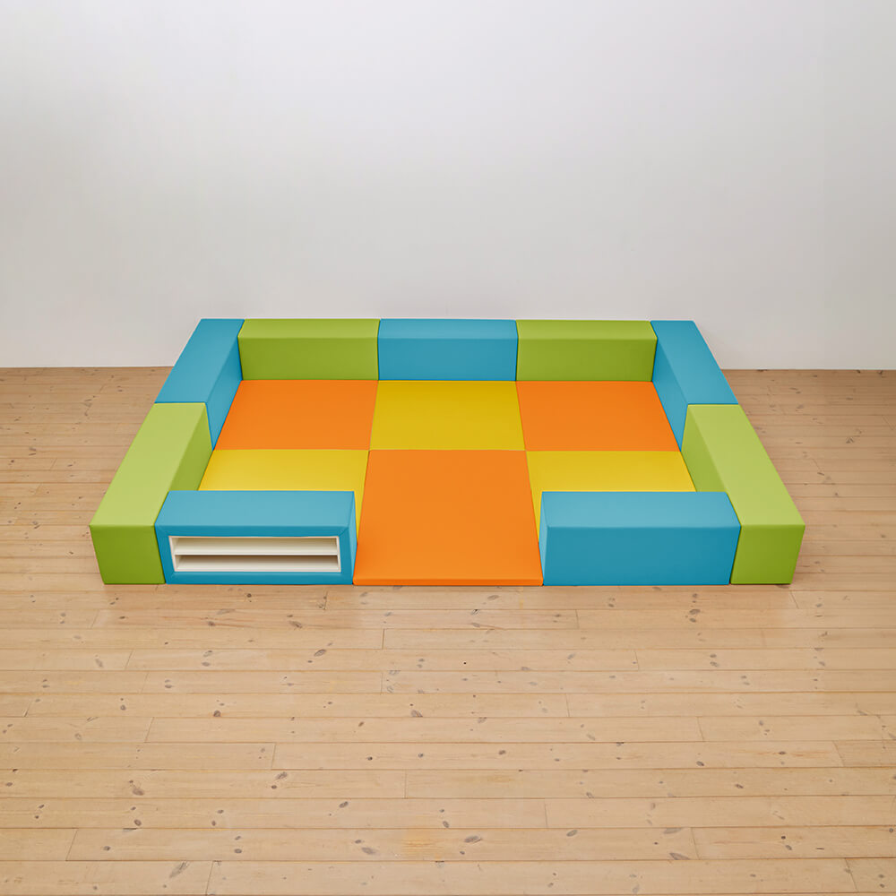 サイドガードの高さが350mm(ライオン)のベーシックシリーズのキッズコーナー3畳セットの入り口・下駄箱付きになります。同タイプでノーマル、入り口付きのタイプもございます。