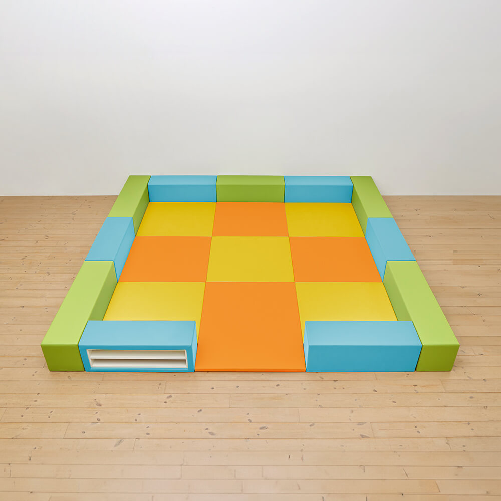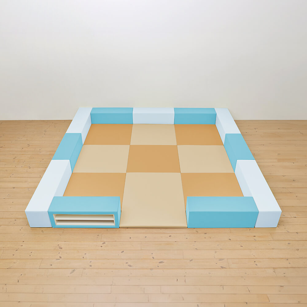サイドガードの高さが300mm(バンビ)のベーシックシリーズのキッズコーナー4.5畳セットの入り口付きになります。同タイプでノーマル、入り口・下駄箱付きのタイプもございます。