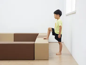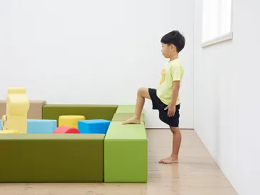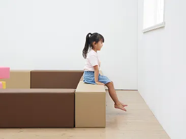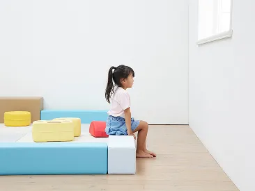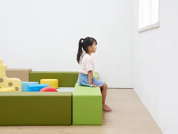 身長110cmのお子さまが座ると足裏が床にしっかりと着く高さ。落ち着いて座れるため、安心して遊んだり待機できる空間づくりに最適です。