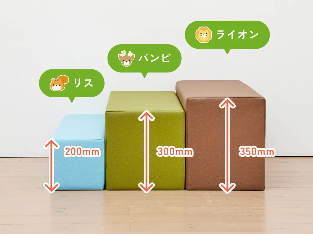 当サイトのキッズコーナーは、お子さまの年齢や身長、遊び方に合わせて選べるよう、3種類の高さのサイドガードをご用意しています。高さはリス(200mm)、バンビ(300mm)、ライオン(350mm)の3タイプ。低めのリスは小さなお子さまや見通しを重視したい場合に、バンビやライオンは活発に遊ぶお子さまの安全をよりしっかり守るのに適しています。それぞれのサイドガードの高さの違いを比較しながらご紹介します。